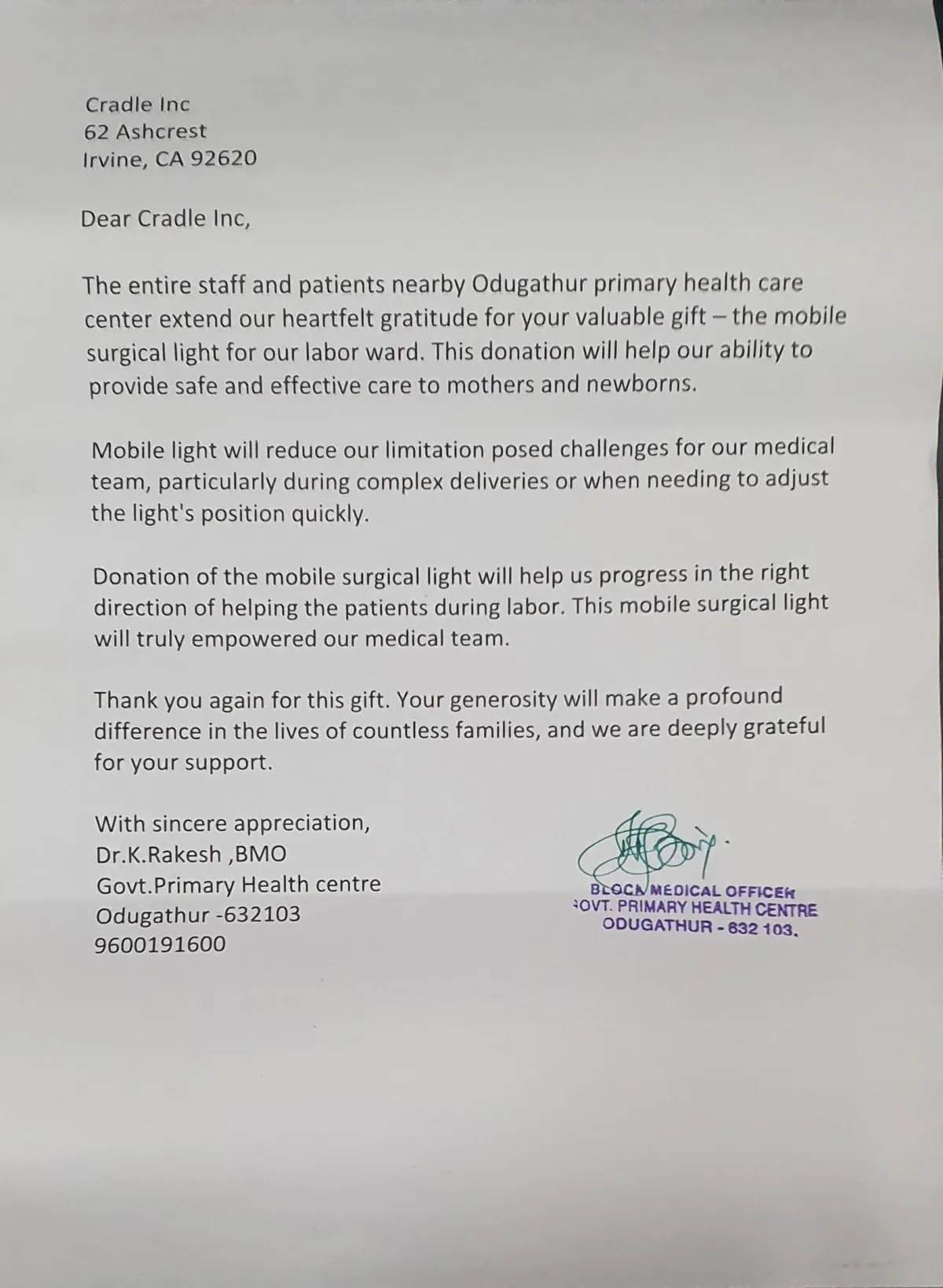 Beneficiary: Primary healthcare center, Odugathur, India - 632103.